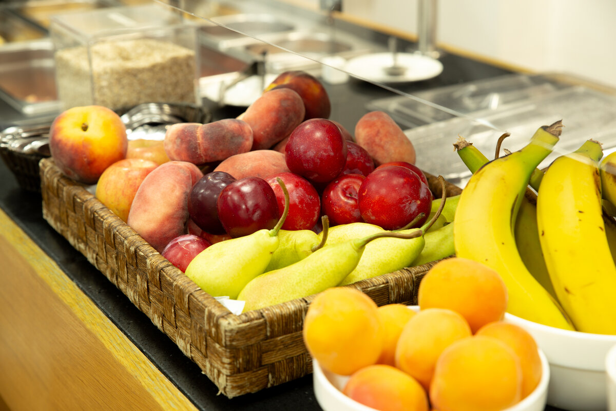 Diariamente, de 7 a 11 de la mañana en la Sala Liébana, puede disfrutar de un variado Desayuno Buffet, donde le ofrecemos una selección de diferentes productos, tanto calientes como fríos.