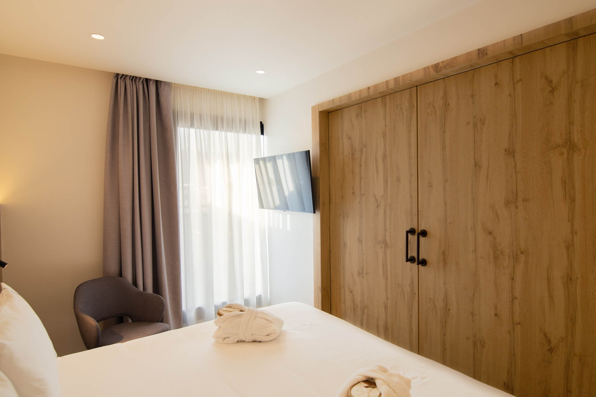 Ein Schlafzimmer mit zwei Betten und einem Fernseher Link to Larger Item Photo, ListItemCarouselImage4